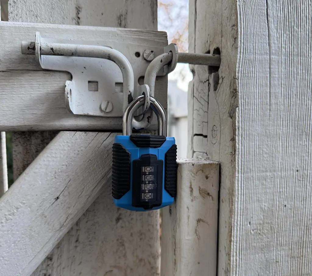 We have a side gate with a keyed padlock which is exposed to the elements all the time. It easily gets rusty and stiff. We even lost the key few times. We wanted to give it a try to this combination padlock for outdoors. It seems to be well-built with weather-proof finish.